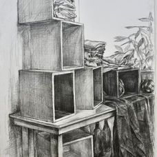 写実的な絵の模写なのでごまかしがきかず、特に花の陰影をつけるのが難しかった。じっくり時間をかけて描き続けると立体感が出てきて達成感のある模写だった。
